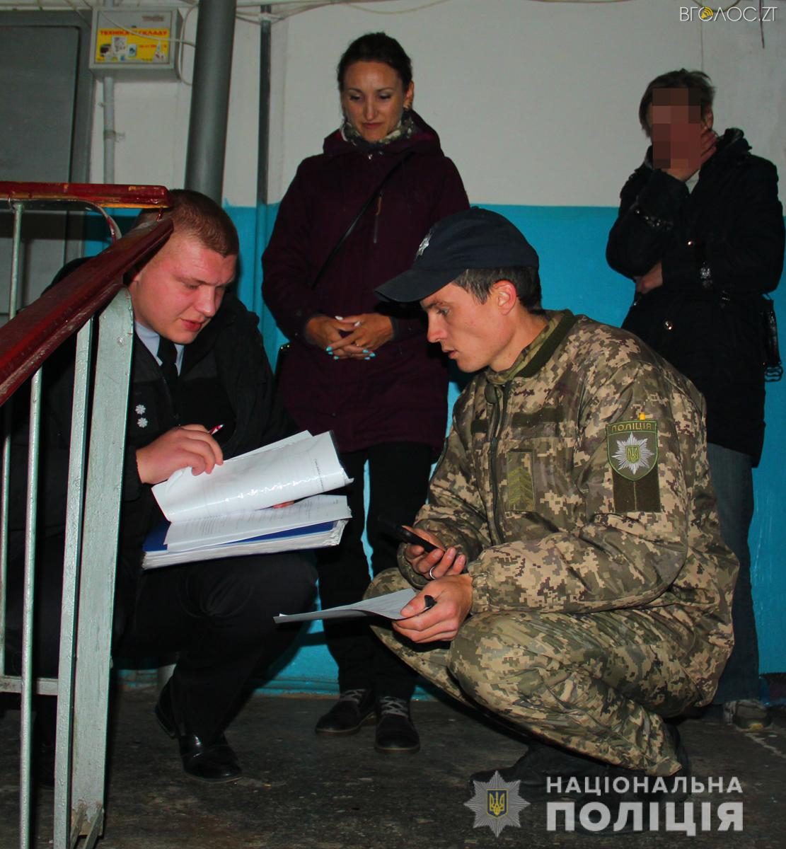 “Близько 15:00 до Житомирського відділу поліції надійшло повідомлення про виявлення на сходинковому майданчику у під’їзді тіла чоловіка з явними ознаками насильницької смерті. На місці події працівники слідчо-оперативних груп міськвідділу та Головного управління Нацполіції встановили особу загиблого. Ним виявився 59-річний житель сусіднього будинку”, – йдеться у повідомленні.