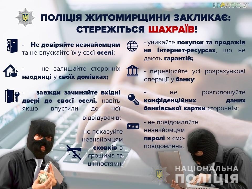 Нагадаємо, що житомирський шахрай привласнив понад 8 млн грн своїх знайомих. На Житомирщині шахраї видурили у громадян більше 230 тис. грн.