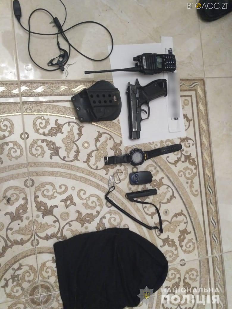 Після затримання поліцейські за процесуального керівництва прокуратури області провели невідкладні обшуки за місцями проживання та тимчасового перебування підозрюваних. У результаті вилучено 6 автомобілів, на яких вони пересувались, 20 одиниць вогнепальної зброї (від пістолетів до нарізних рушниць), 24 одиниці – холодної, майже 200 боєприпасів, радіостанції, гумові кийки, камуфляжний одяг, десятки мобільних телефонів, гроші, засоби зламу замків та інші свідчення протиправної діяльності.