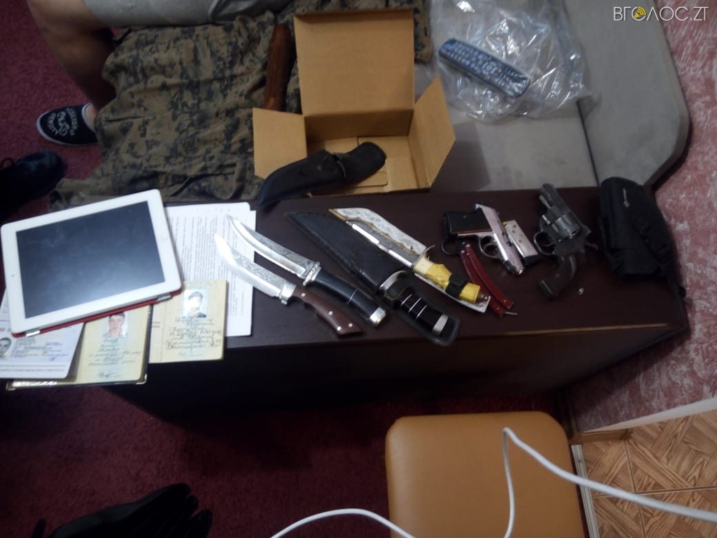 Під час санкціонованих обшуків за місцем проживання фігурантів провадження 26 червня виявили та вилучили значну кількість предметів, які використовувалися для підготовки та вчинення злочинів (мобільні телефони, банківські картки, квитанції з ломбардів, чорнові записи, камуфльовані костюми, балаклави, пістолети, глушники до них, гладкоствольна та нарізна вогнепальна зброя, ножі тощо), а також вибухову речовину, схожу на тротил та електродетонатор.