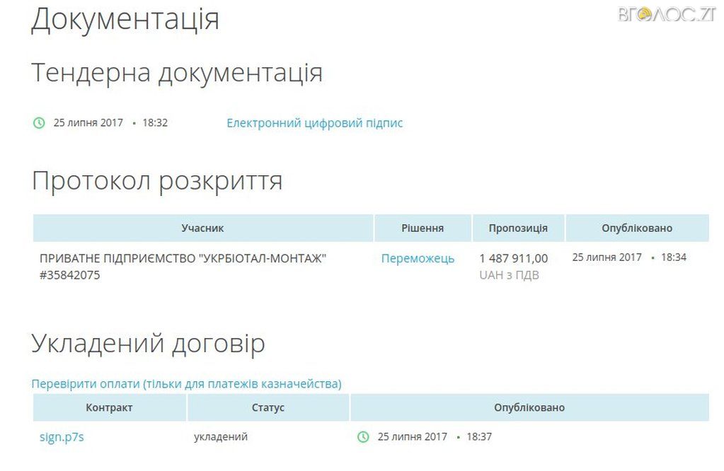 Щоправда, невідомо з яких причин на порталі публічних закупівель замовник робіт, сільрада, не оприлюднила укладений із підприємством договір. Попри те, що його було підписано ще 31 липня 2017 року, станом на 27 жовтня на сайті він не оприлюднений. Факт його існування підтверджує хіба що платіжний документ, у якому є посилання на підписаний 31 липня договір.