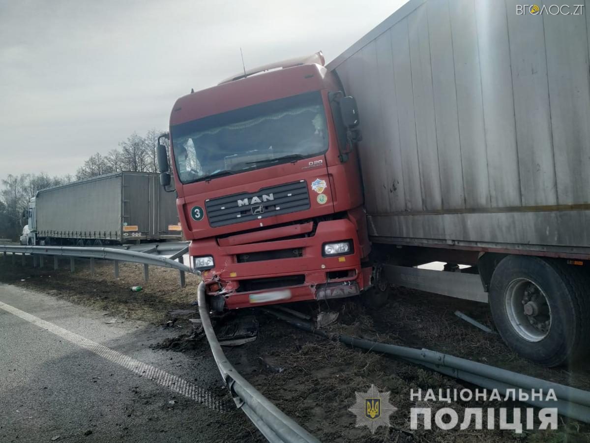 “За попередньою інформацією, близько 6 ранку водій рейсового автобуса «СКАНІА»,  30-річний житель Львівщини, рухаючись по автодорозі Київ – Чоп у напрямку Житомира, неподалік села Улашанівка не впорався з кермуванням та скоїв зіткнення з вантажним автомобілем «МАН» під керуванням 59-річного жителя Київщини. У результаті вказаної ДТП постраждали двоє пасажирів автобуса, 21-річний житель Чернігівщини та 25-річний луганчанин. Вони були доставлені до медичного закладу”, – йдеться у повідомленні.