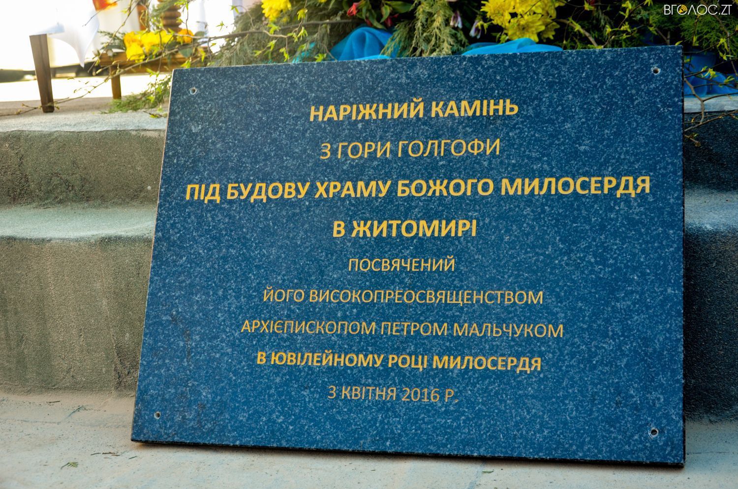 Для парафії Божого Милосердя в Житомирі 3 квітня відбулася довгоочікувана подія. Від імені Архієпископа Петра Мальчука, о. Віталій Безшкурий канлер Київсько – Житомирської дієцезії освятив наріжний камінь під будівництво майбутнього храму Божого Милосердя.