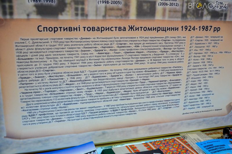 Галерея спортивної слави Житомирщини з’явилася на факультеті фізичного виховання і спорту ЖДУ ім. Івана Франка майже два роки тому. За словами декана факультету Тамари Кутек, її відкриття стало довгоочікуваною подією не лише для університету, а й для всієї області.