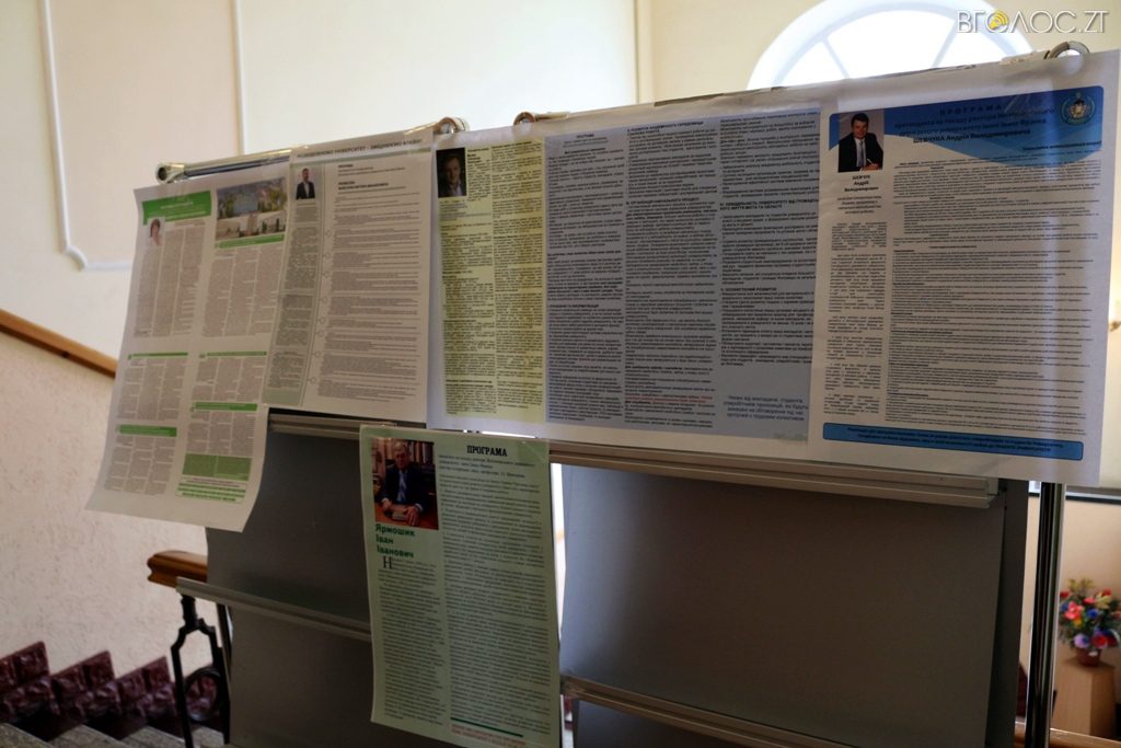 «У виборах ректора університету беруть участь усі науково-педагогічні працівники – це 70% виборців, студенти – 16%, а також 9% господарського персоналу. Загалом це – 619 виборців. На посаду ректора претендують 5 кандидатів. За правилами переможцем стане той, хто набере 50% голосів. Минулому ректору запропонували посаду в Академії педагогічних наук, тому він з задоволенням перебрався на більш статусну посаду»,– розповів голова виборчої комісії Валерій Новик.