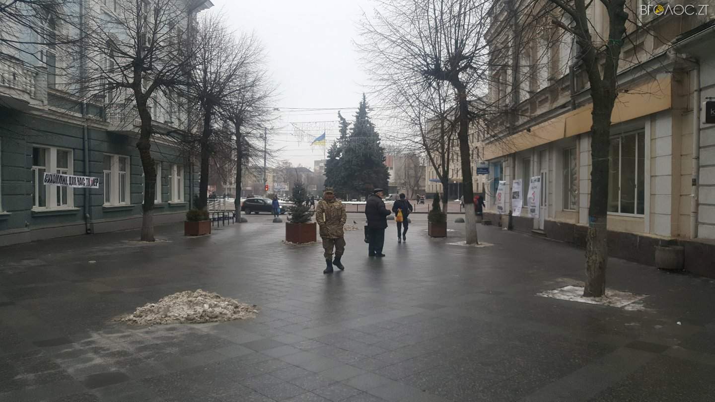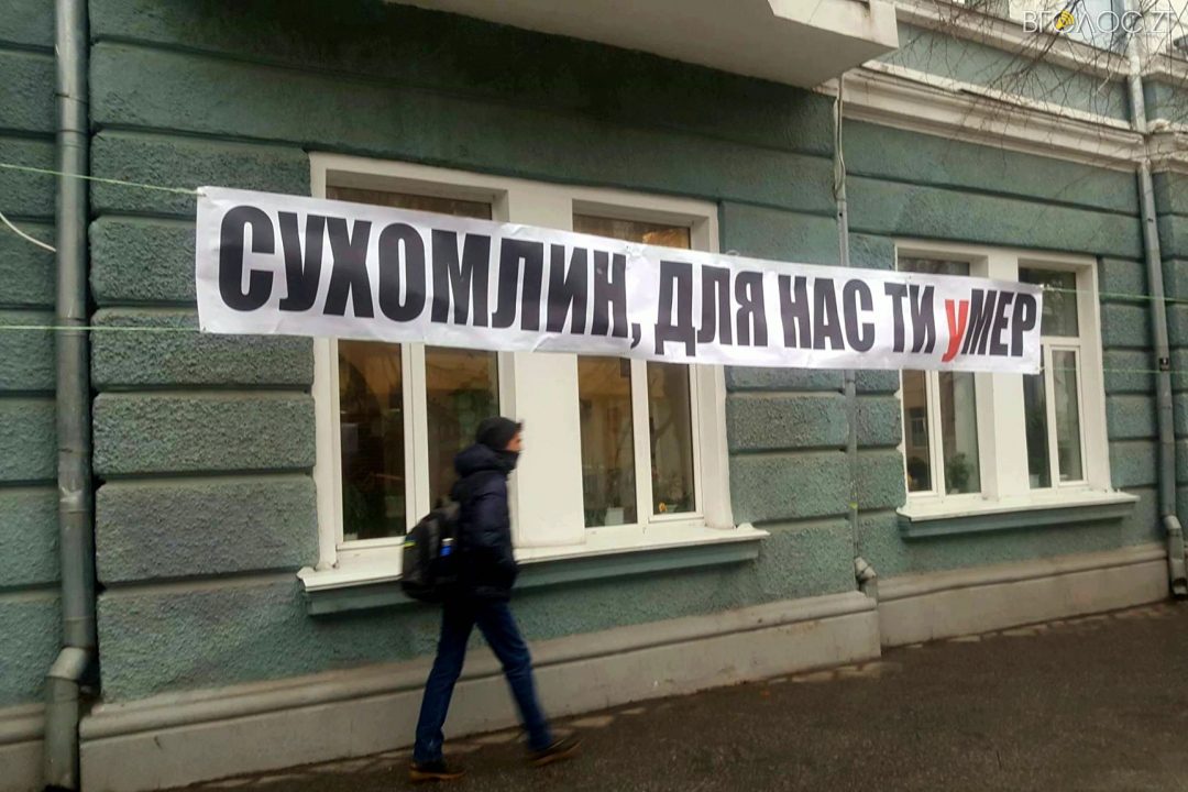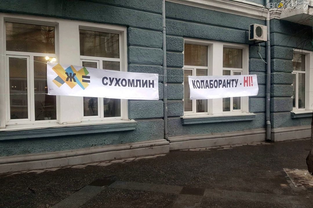 На Михайлівській у Житомирі активісти влаштували акцію протесту,  вимагаючи від міської ради відмінити традиційне святкування Масляної 18 лютого. У руках активісти тримають плакати з гаслами: “Сухомлин зневажає героїчне минуле українського народу”, “Сухомлин, для нас ти уМЕР” та інші.
