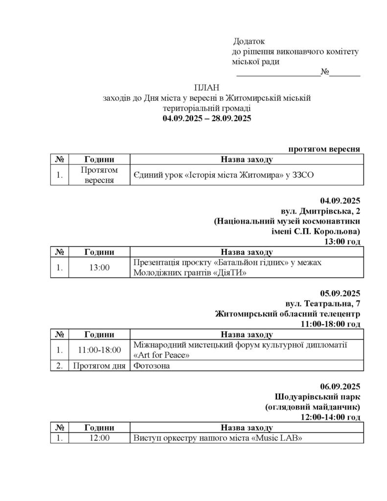 Цього року заходи до дня Житомира триватимуть у місті 24 дні, з 4 вересня по 28 вересня. Таке рішення ухвалили 3 вересня під час засідання виконкому міської ради.