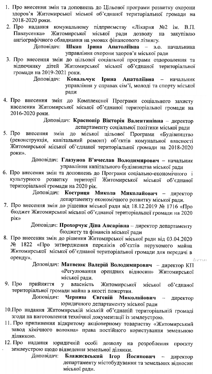 У Житомирі 2 вересня відбудеться позачергова сесія Житомирської міської ради. Відповідне розпорядження 1 вересня підписав міський голова Сергій Сухомлин .