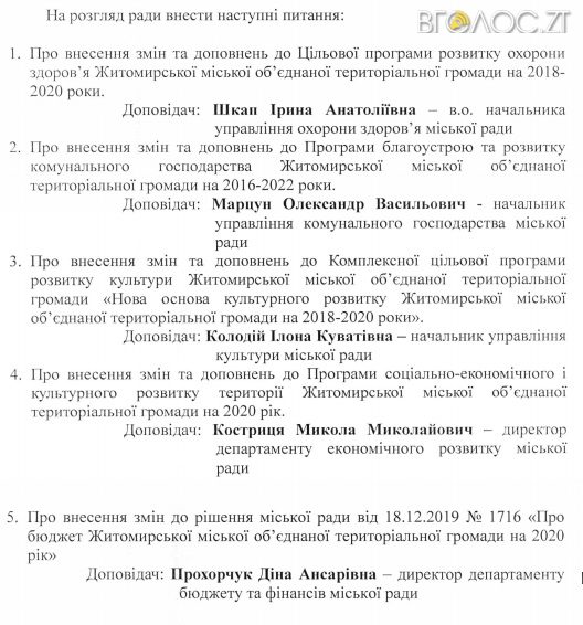 Депутати Житомирської міської ради 17 березня зібрались на позачергову сесію, щоб ухвалити низку першочергових рішень. У залі зареєструвалися 25 депутатів. У зв’язку із заходами щодо недопущення поширення коронавірусної інфекції COVID-19 засідання відбуваються у закритому режимі.