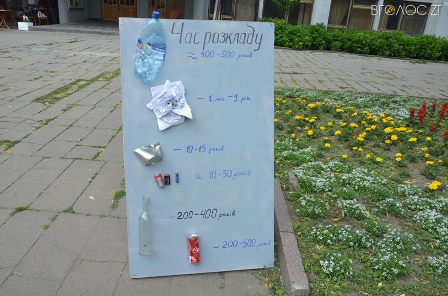 «Ми вчимо дітей та хочемо змінити свідомість населення у тому, як потрібно поводитися зі сміттям. Наше звалище переповнене. Якщо ми і далі будемо викидати сміття так, як ми викидаємо, то у нас може бути львівський сценарій. Щоб цього не відбулося, ми пропонуємо роздільно збирати сміття. Його можна обміняти у пунктах прийому або робити цікаві речі», – розповів співробітник кафедри екології Житомирського державного технологічного університету Юрій Мандро.