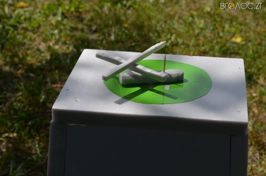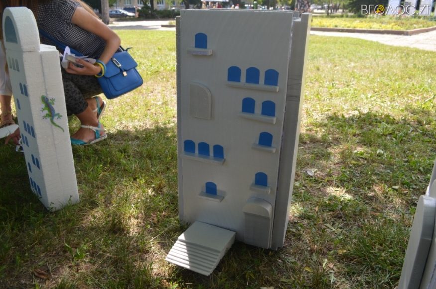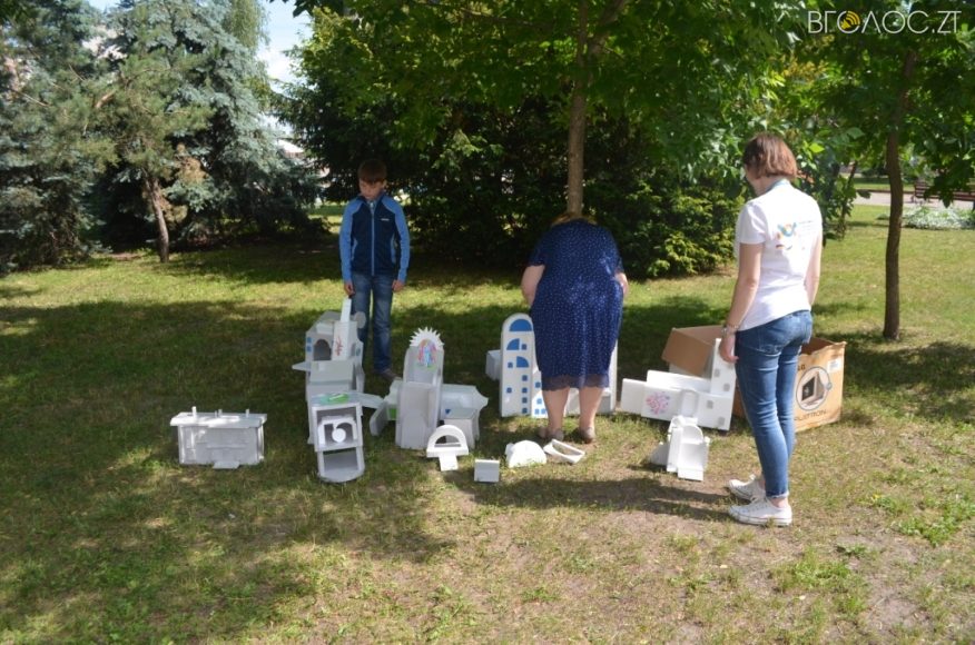 На галявині поруч з обласною бібліотекою імені Олега Ольжича 13 червня учні Житомирського центру науково-технічної творчості розмістили умовний макет Житомира. Всі будівлі виготовили із пінопласту. Про це повідомила прес-служба міської ради.