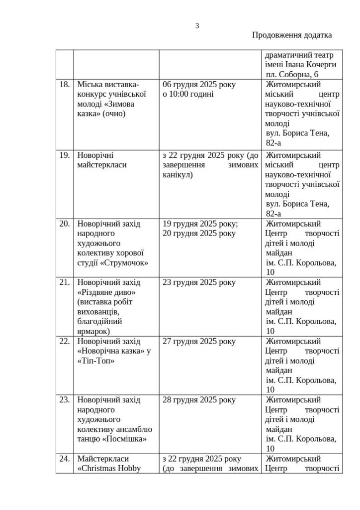 У Житомирі новорічні свята триватимуть з 1 по 28 грудня. Про це йдеться у проекті рішення виконкому міської ради.
