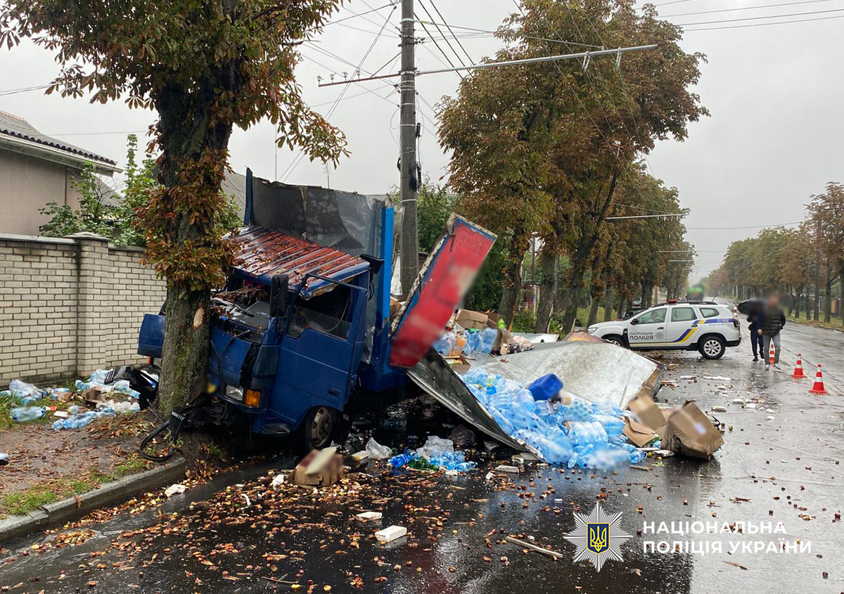 У Житомирі вранці 17 вересня на вулиці Івана Гонти вантажівка ТАТА зіткнулася з деревом. Про це повідомили у поліції області.