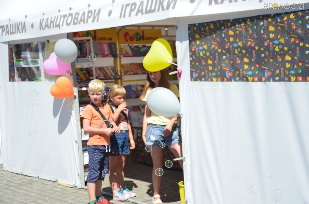 Шкільний ярмарок відкрився на вулиці Івана Кочерги у Житомирі в суботу, 11 серпня. Його організаторами виступили торговий дім «Піраміда» та дитячий магазин «Cubi».