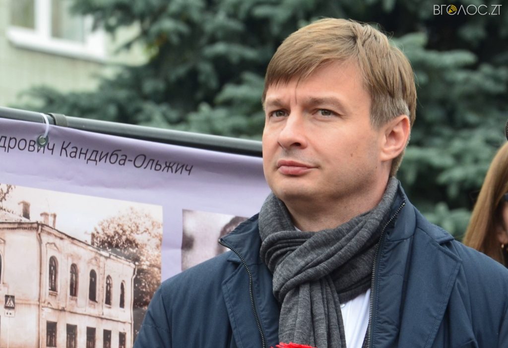 Довідково: Олег Ольжич (Кандиба) народився в Житомирі 21 липня (8 липня ст. ст.) 1907 року. Батько — відомий поет та письменник Олександр Іванович Кандиба (псевдонім Олександр Олесь), мати — Віра Антонівна Свадковська, гімназійна вчителька. Родина в 1912–1919 жила заможно та мешкала в дохідному будинку Файбишенко на Новій будові, вул. Антоновича, 64/16, (на розі вул. Антоновича (Горького) та Івана Федорова). Будинок вцілів, але знаходиться в аварійному стані. Творча спадщина Олега Ольжича кількісно невелика, але значима своїм духовним зарядом, вона характеризується великим діапазоном тем і сюжетів, починаючи від доісторичних часів і закінчуючи сучасністю. Феномен цієї людини, поета і вченого слід розглядати лише в сукупності, у тісному зв’язку життя і творчості з його трагічною смертю. Сьогодні в Україні виходять книги з творами Олега Ольжича, поставлений біографічний фільм «Я камінь з Божої пращі», його ім’ям названо одну з київських вулиць. Ця видатна і трагічна постать заслуговує і увічнення його пам’яті меморіальною дошкою в Целенбау, де Ольжич був замучений. Інші народи вшанували своїх мучеників, повинні це зробити і українці. У 2016 році Олегу Ольжичу посмертно присвоєно звання «Почесний громадянин міста Житомира».