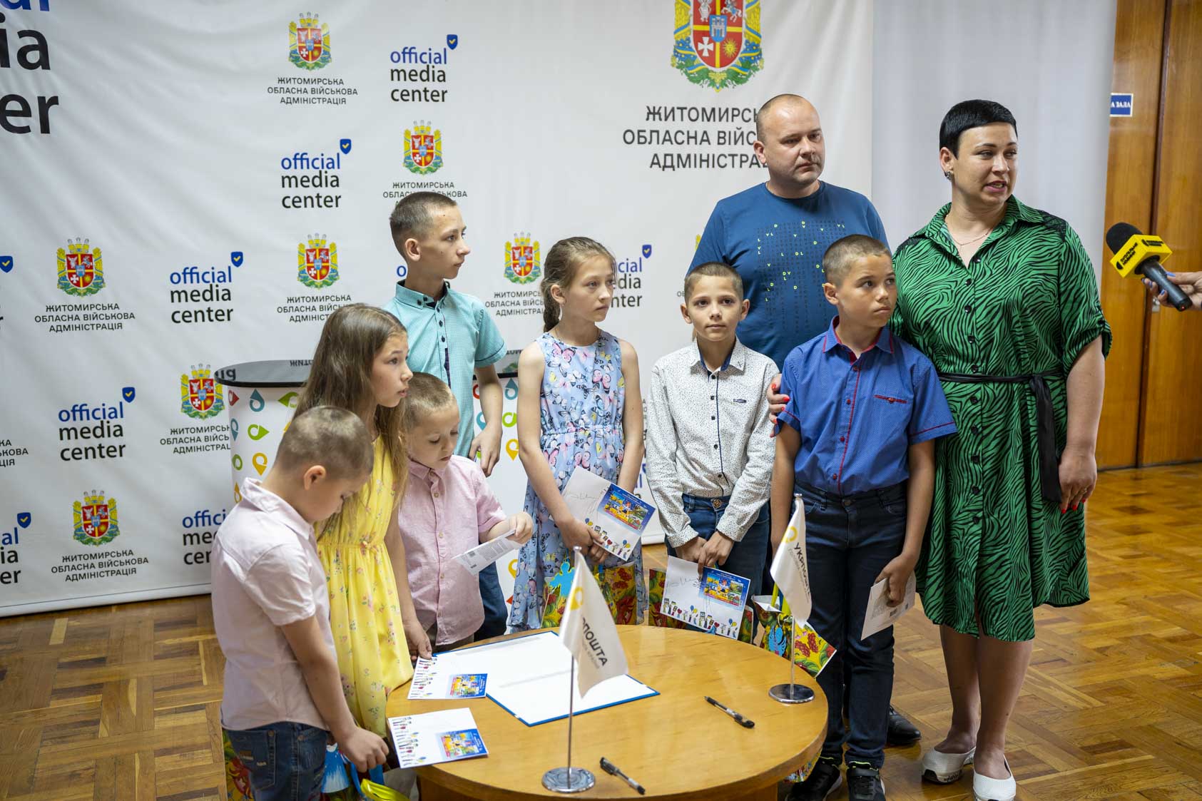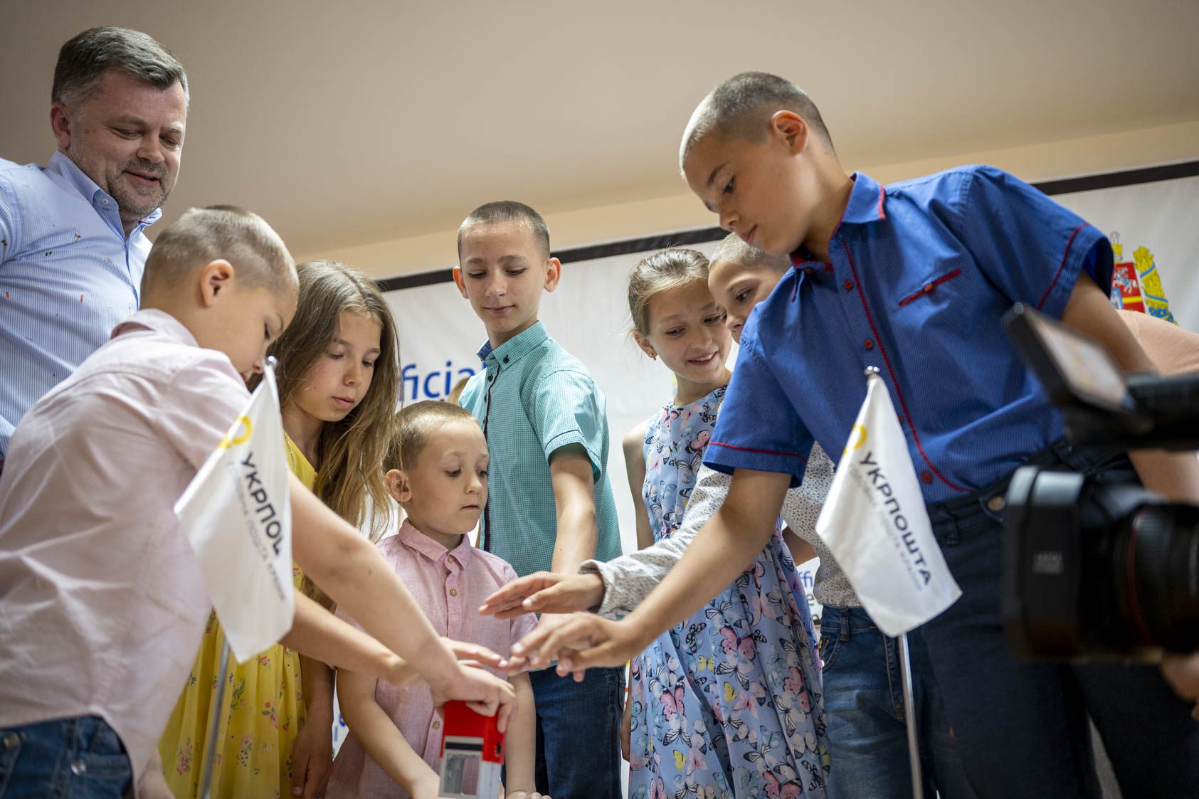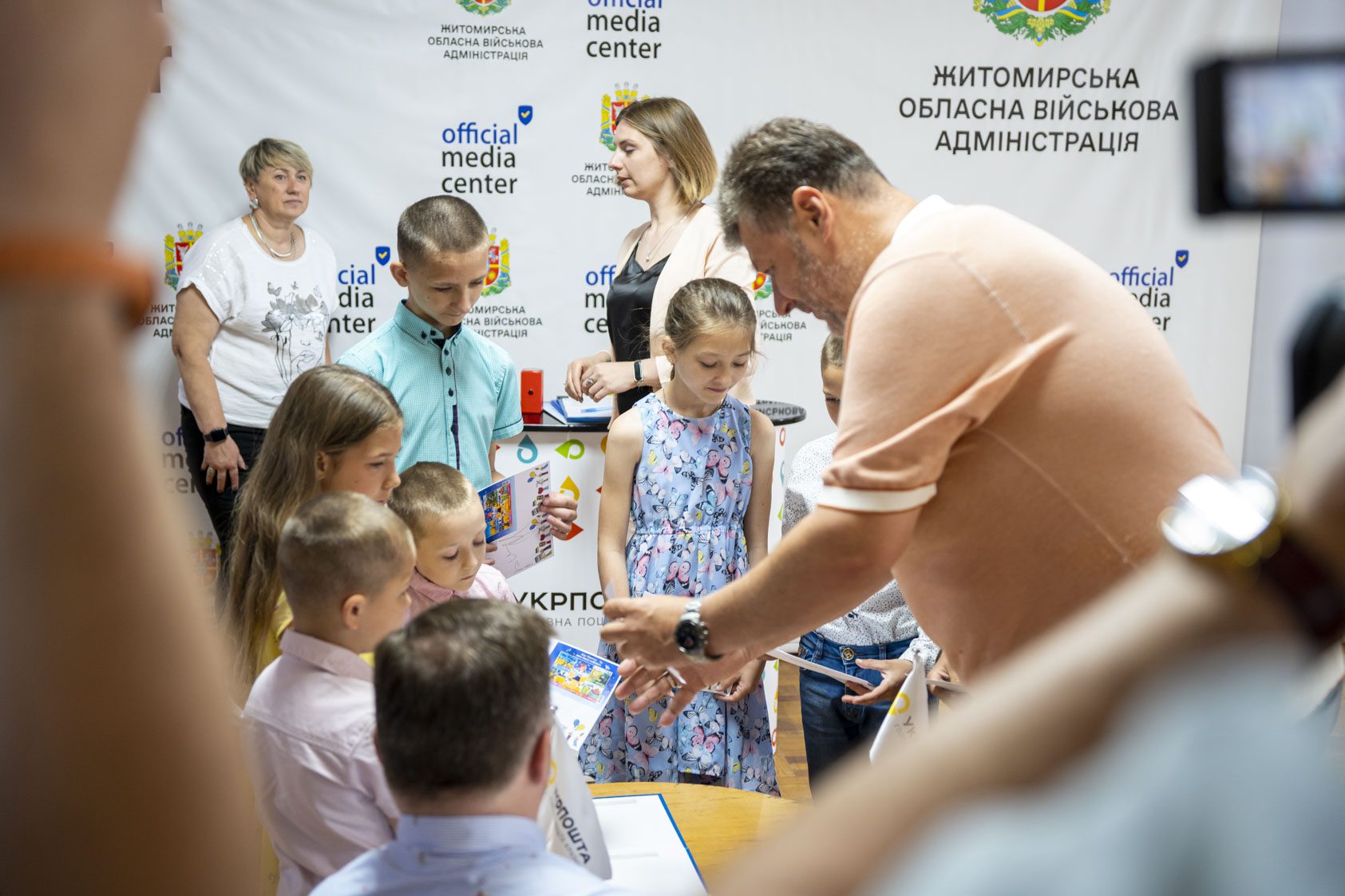 У Житомирські обласній військовій адміністрації 1 червня відбулося спецпогашення марки «Діти Перемоги малюють Україну майбутнього». Участь у заході взяли діти з патронатної сім’ї.