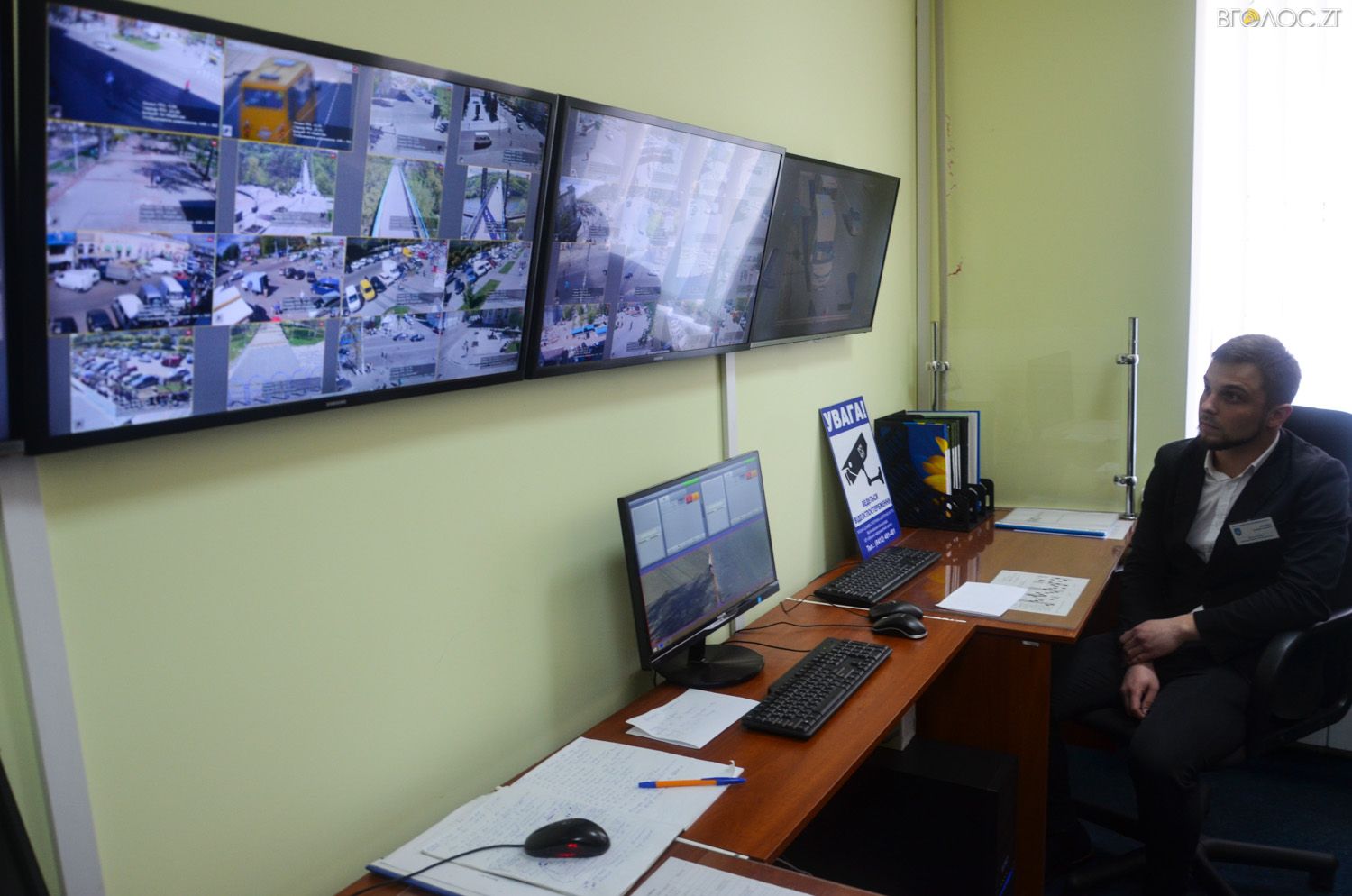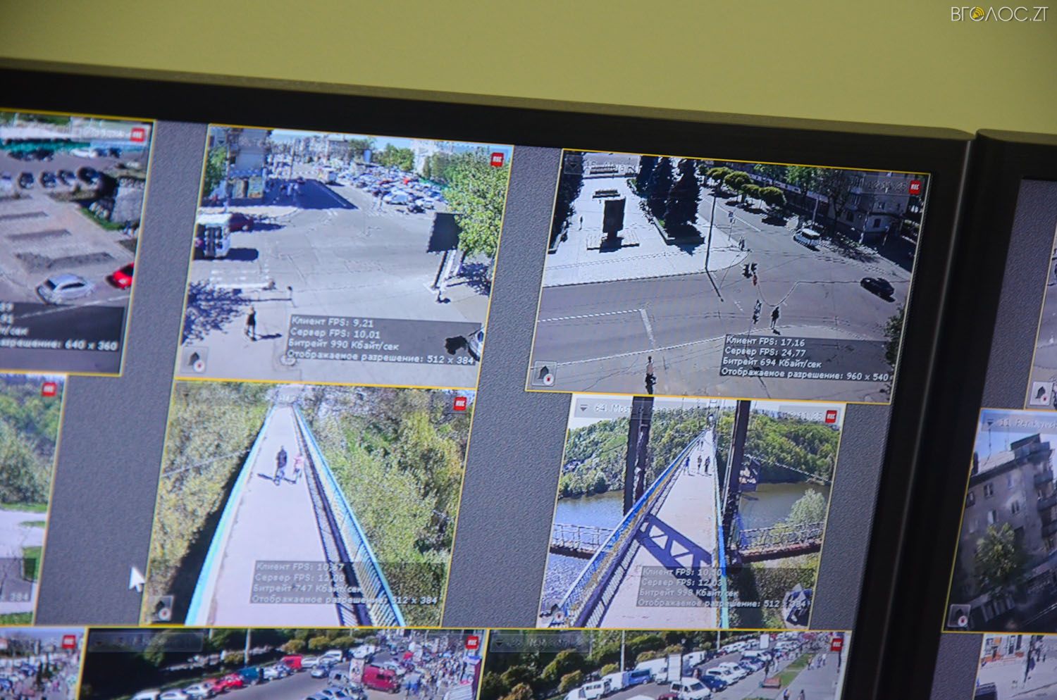 Наразі у місті встановлено 65 відеокамер спостереження. 64 з них виведені на екран.