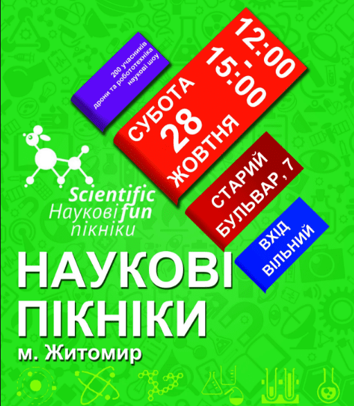 У приміщенні Житомирського національного агроекологічного університету 28 жовтня відбудеться перший науковий пікнік у місті – «ScientificFun». Учасниками заходу будуть молоді та юні спеціалісти, науковці, ентузіасти, які ділитимуться своїми знаннями з природничих наук. Про це повідомила прес-служба міської ради.