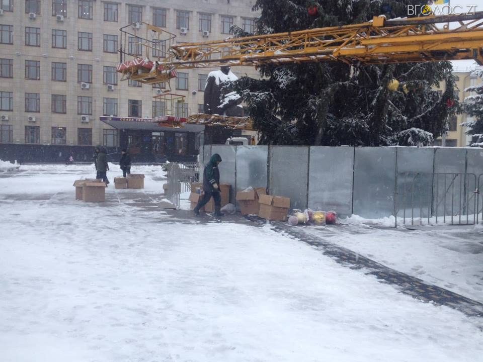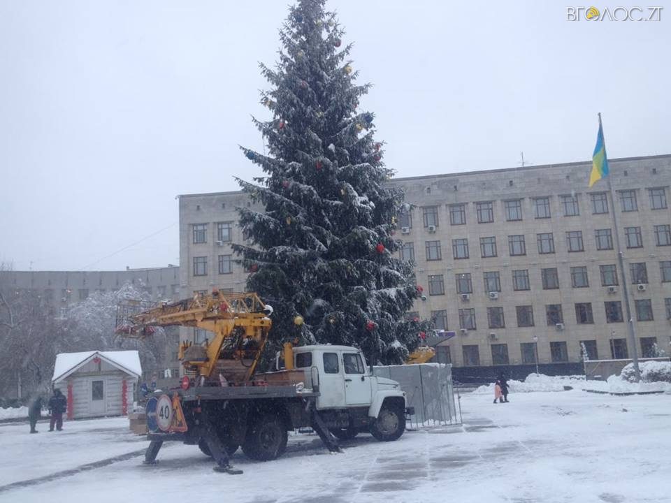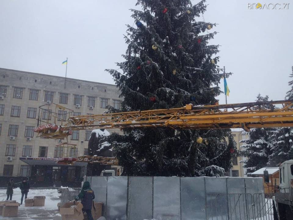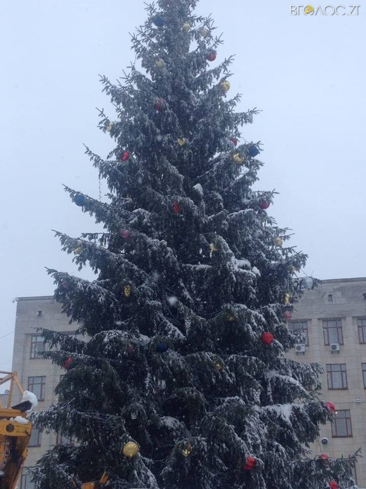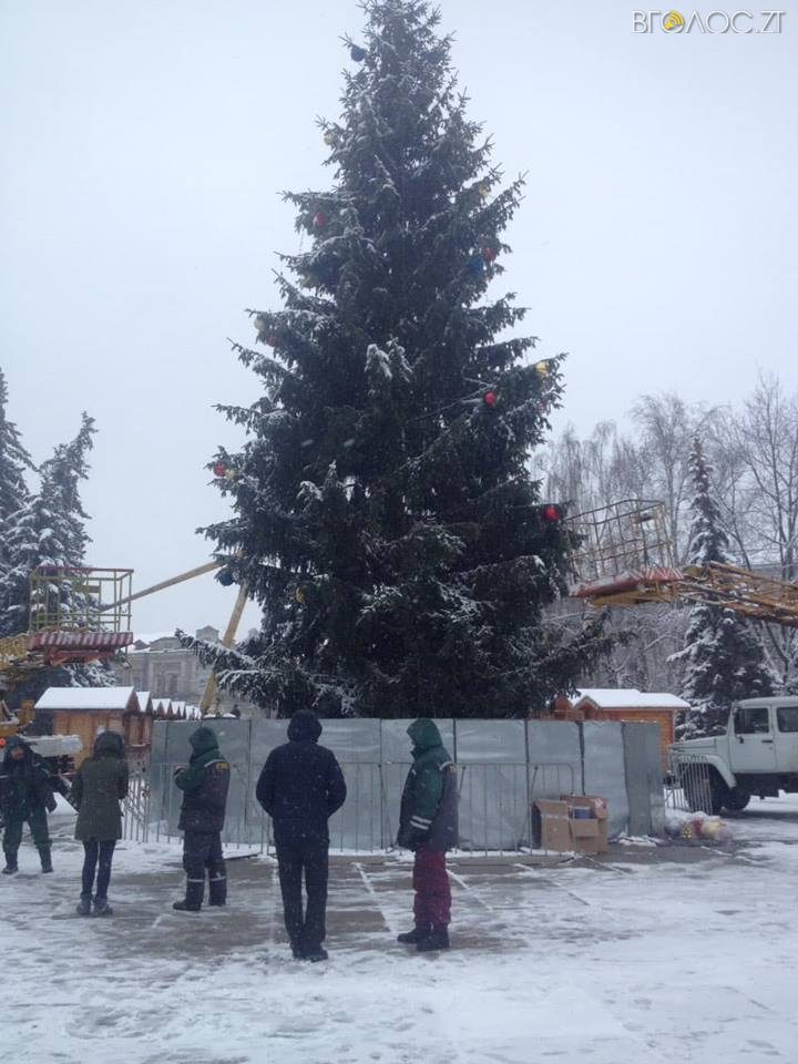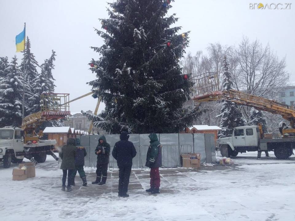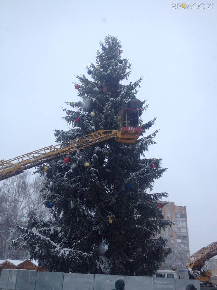 На майдані Корольова почали прикрашати новорічну ялинку. «Живу» ялинку почали встановлювати 5 грудня працівники комунального підприємства «Зеленбуд». ЇЇ зрізали на території дитячого садочку №37 – «Ластівка». Відомо, що дирекція ДНЗ звернулася до комісії з обстеження зелених насаджень при міській раді з проханням видалити дерево ще влітку, так як воно заважало комунікаціям.