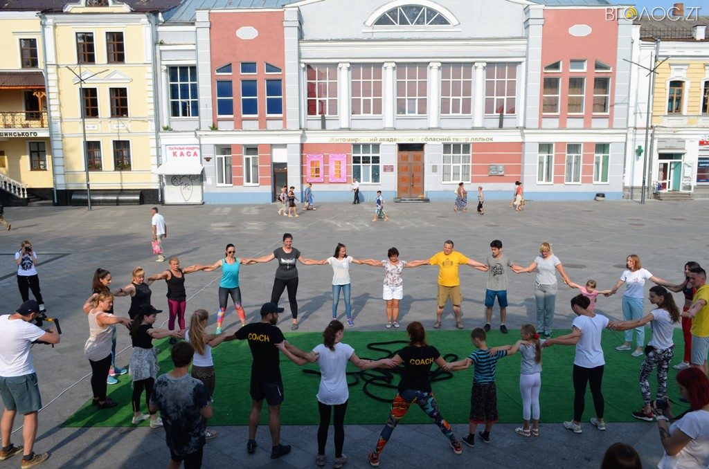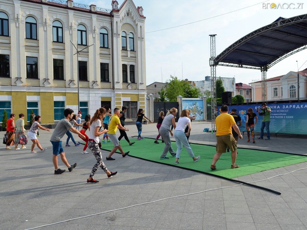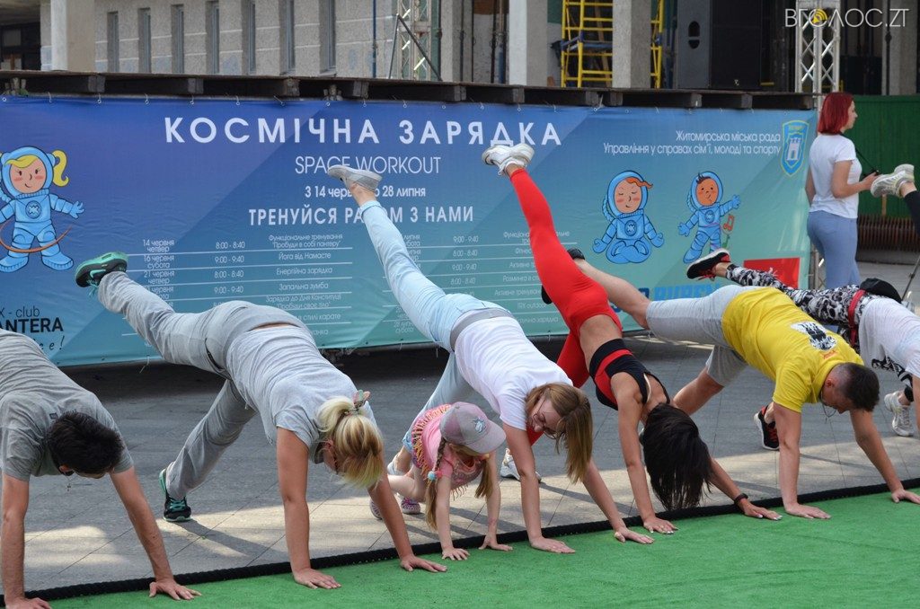 На Михайлівській у Житомирі 14 червня провели першу ранкову зарядку заняттям з аеробіки та фітнесу. «Космічну зарядку» впродовж другої половини червня та липня тренери спортивних клубів та спортивних федерацій міста щочетверга з 08:00 години та щосуботи з 09:00 години проводитимуть заняття для найактивніших та небайдужих до свого здоров’я містян. Про це повідомила прес-служба міської ради.