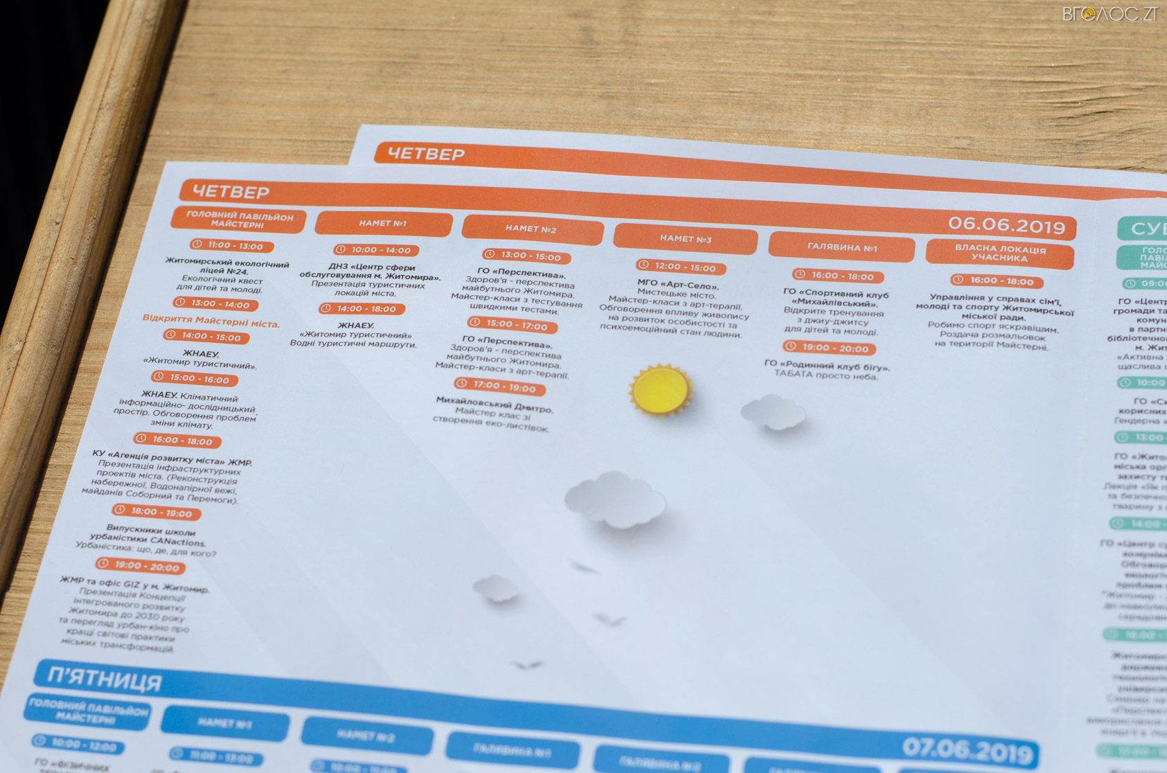 “Фестиваль “Майстерня міста” триватиме 4 дні. Кожного дня на майданчику в парку культури та відпочинку ім. Ю.О. Гагаріна (біля мосту)  презентуватимуть свої ідеї активні житомиряни, представники громадських організацій та влади”, – йдеться у повідомленні.