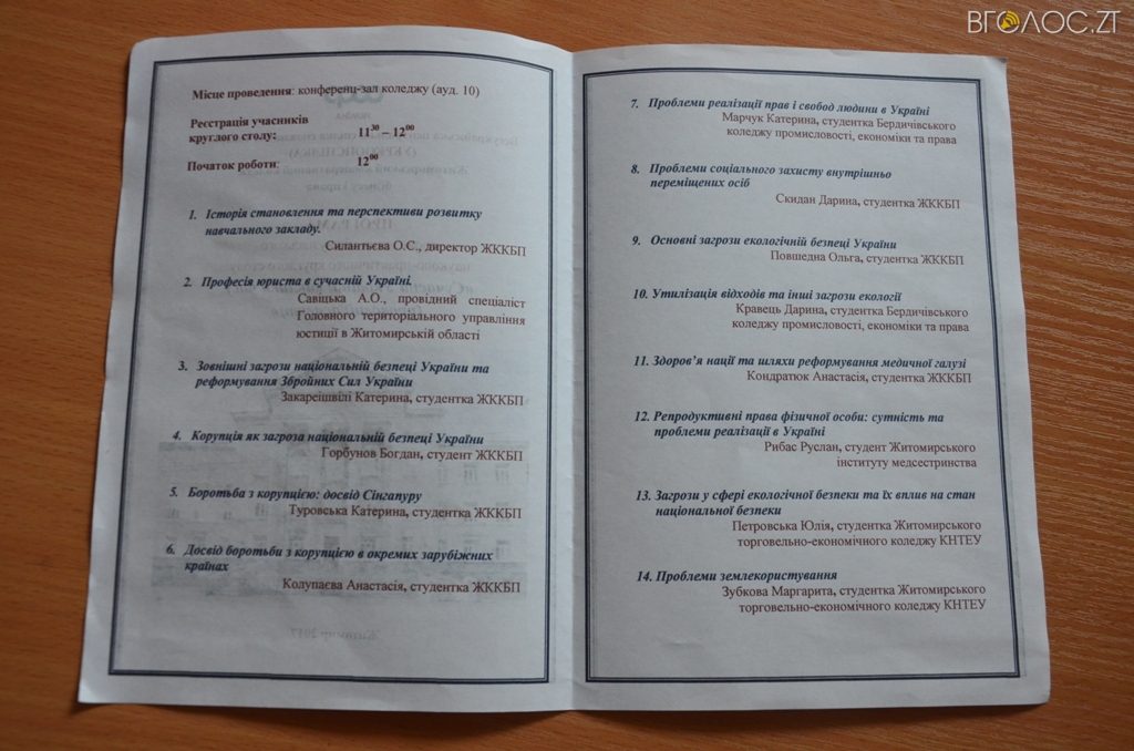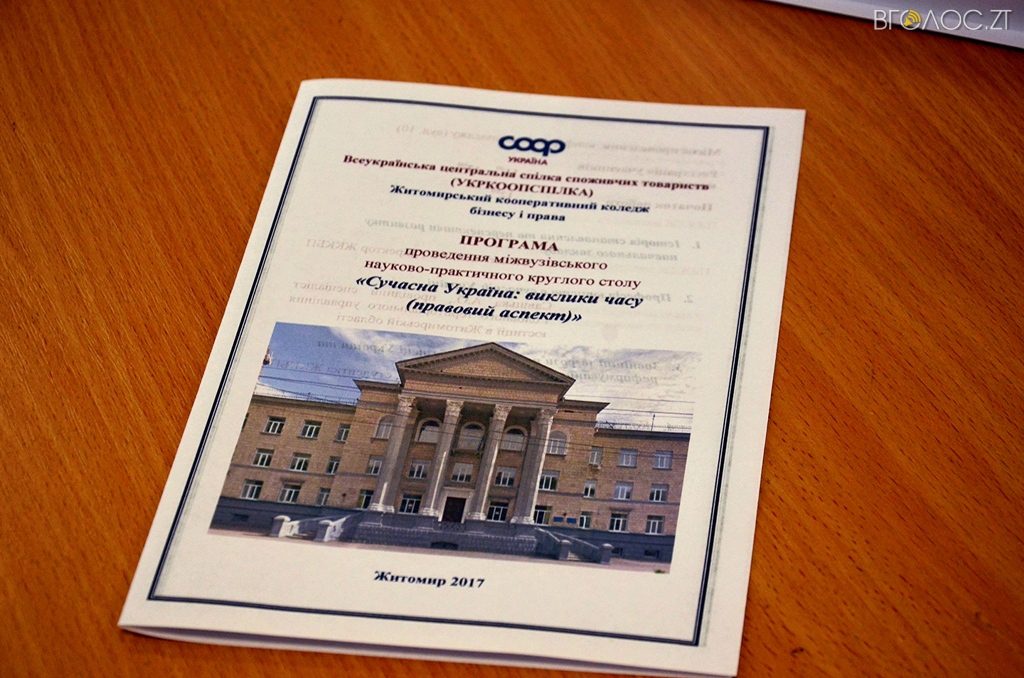 У приміщенні Житомирського кооперативного коледжу бізнесу і права 4 жовтня відбувся міжвузівський науково-практичний «круглий» стіл на тему «Сучасна Україна: виклики часу (правовий аспект)».