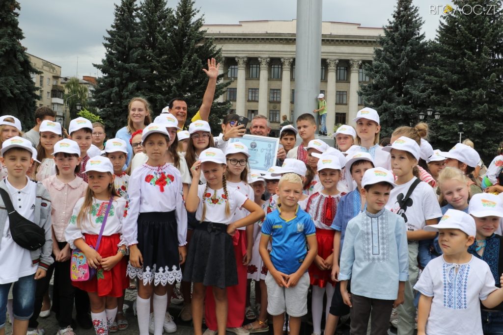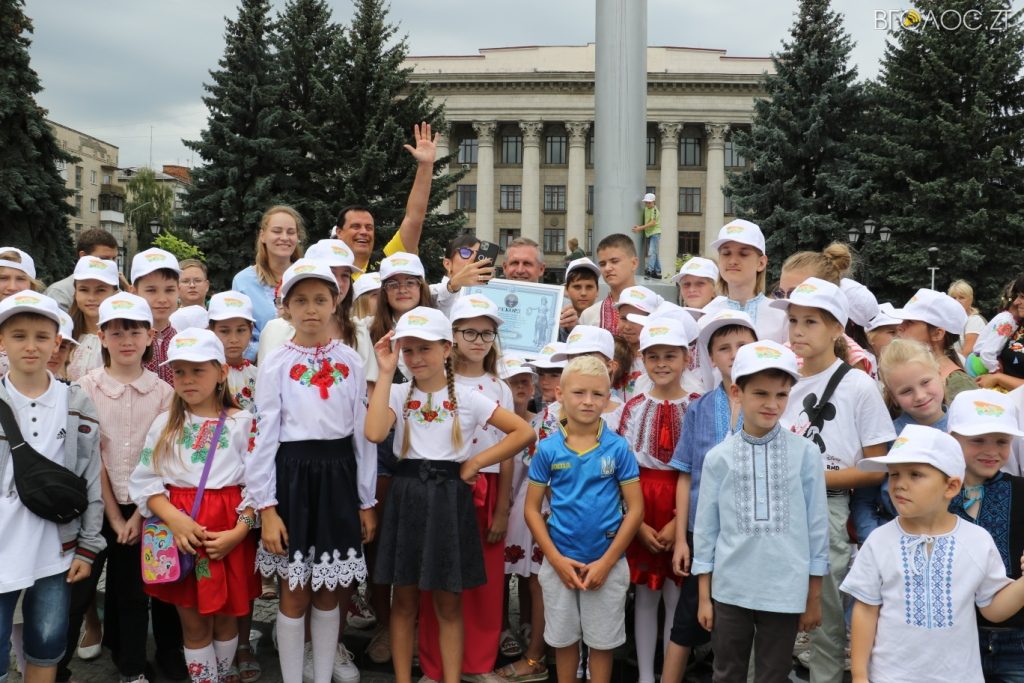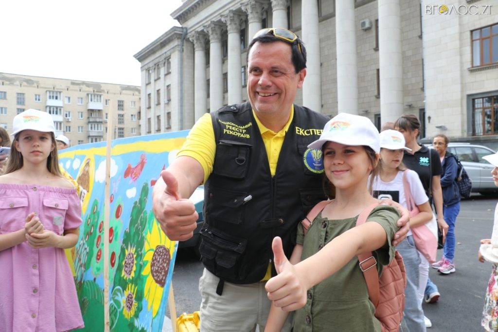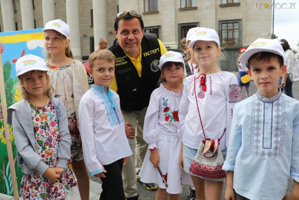 «Висота – 1 м 44 см, довжина 60 м 12 см. Житомир! Новий національний рекорд! Найбільша кількість символів України на картині, створеній дітьми, ‒ 277!!!», ‒ підсумував Зорін.