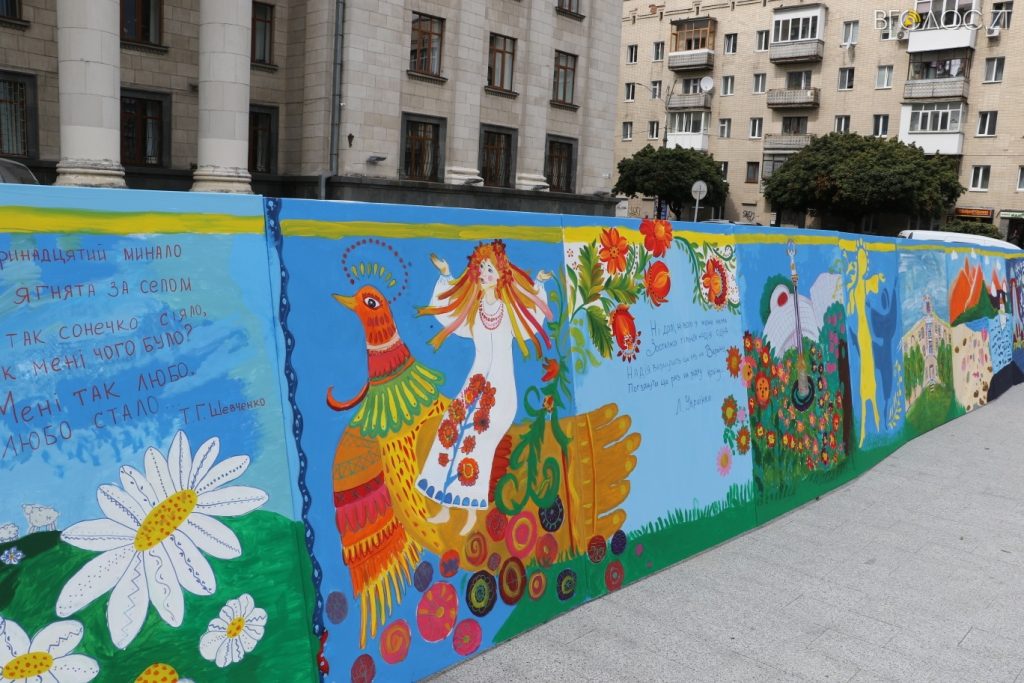 50 полотен із окремими сюжетами були композиційно об’єднані в одну картину. На полотні калина, соняхи, мак, птиця, космос, літак «Мрія», хліб, рушник, пшениця, півень, курка, яблука, груші, Карпати, море, кораблі, пам’ятки архітектури, міста України і багато іншого.