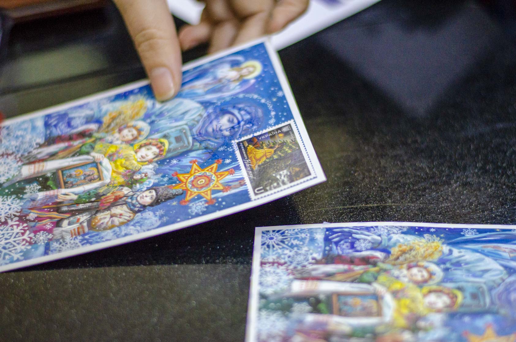 Окрім цього, презентували художню різдвяну картку, на якій зображено ескіз Олександра Охапкіна, який посів 2 місце у народному голосуванні.