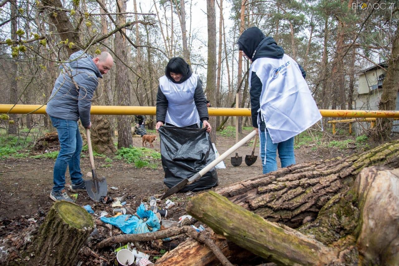 Силами злагодженої команди було очищено від сміття та приведено до ладу зелену зону в мікрорайоні Паперової фабрики, яка знаходиться між картонним комбінатом та дитячим садочком.