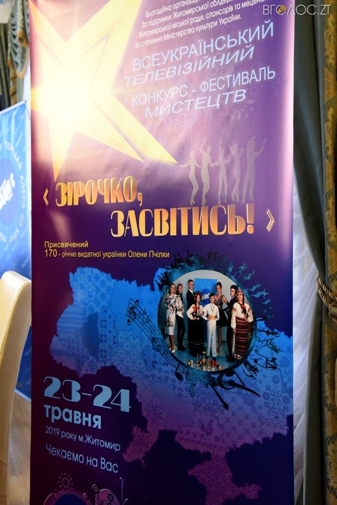 У рамках святкування 170-річного ювілею видатної письменниці, громадсько діячки, науковця, члена-кореспондента Всеукраїнської академії наук, матері Лесі Українки – Олени Пчілки 23-24 травня в приміщенні Житомирської обласної філармонії ім. С.Ріхтера та Житомирського академічного українського музично-драматичного театру відбудеться І Всеукраїнський телевізійний конкурс-фестиваль мистецтв «Зірочко, засвітись!». Про це 21 травня під час прес-конференції повідомила організатор заходу, голова благодійного фонду “Надія Є” Надія Юшкевич.