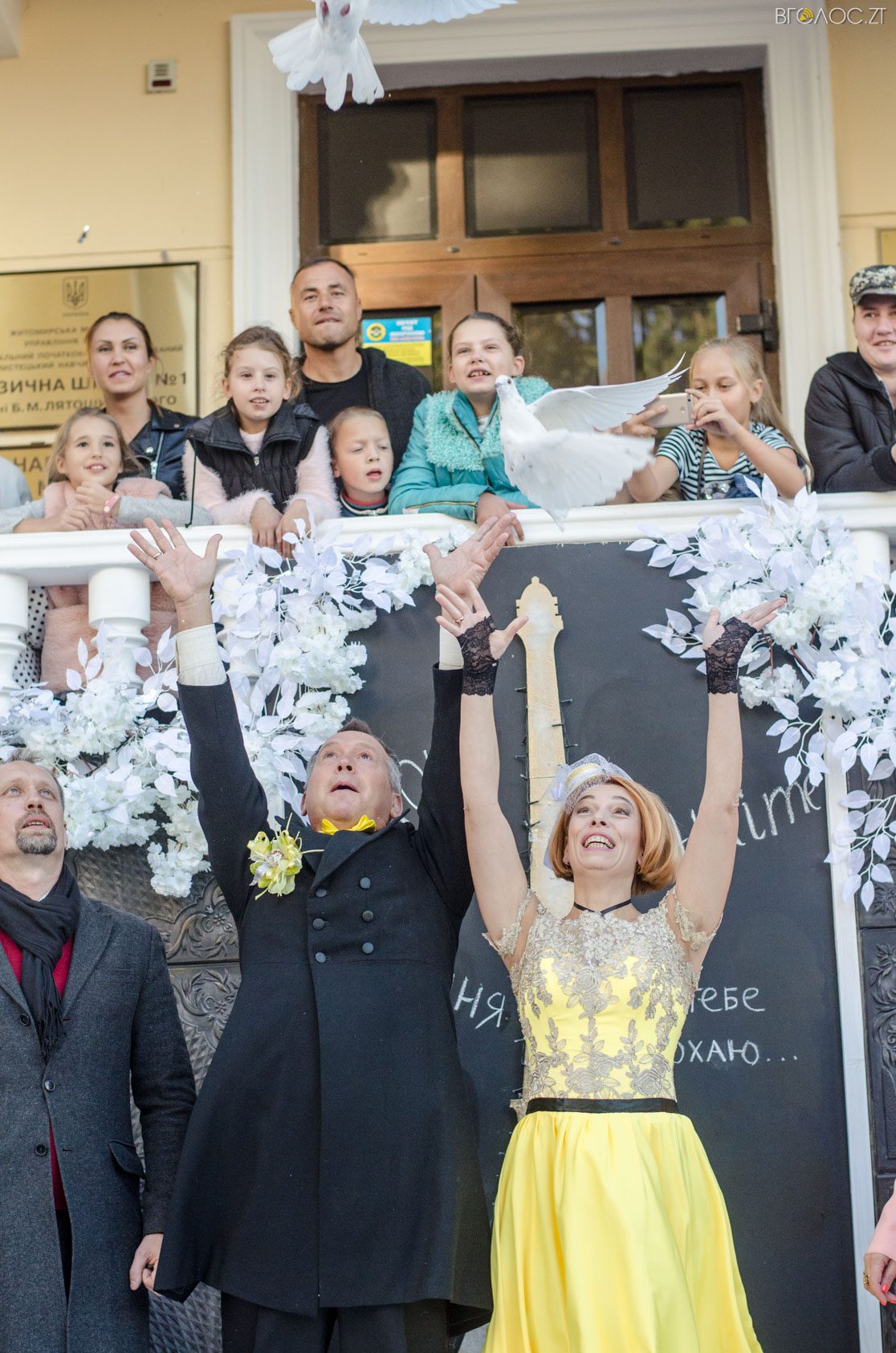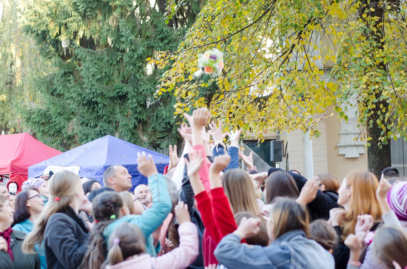 Цього року у Житомирі 14 жовтня під час загальноміського Покровського весілля одружилися дві пари. Пара молодят Крістіна та Денис відгуляли справжнє українське весілля за народними звичаями. Друга пара щасливчиків – це Ірина та Дмитро, весільна церемонія яких відбулася в європейському форматі за участі Центру танцю «AVANTE», артиста гурту «Капрічіо» Юрія Малярчука. Як все відбувалося – бачив власний фотокореспондент «Вголос.zt» Дмитро Савченко.