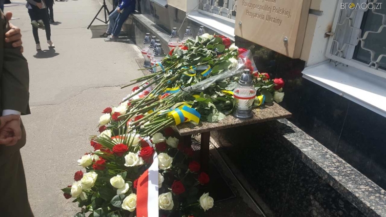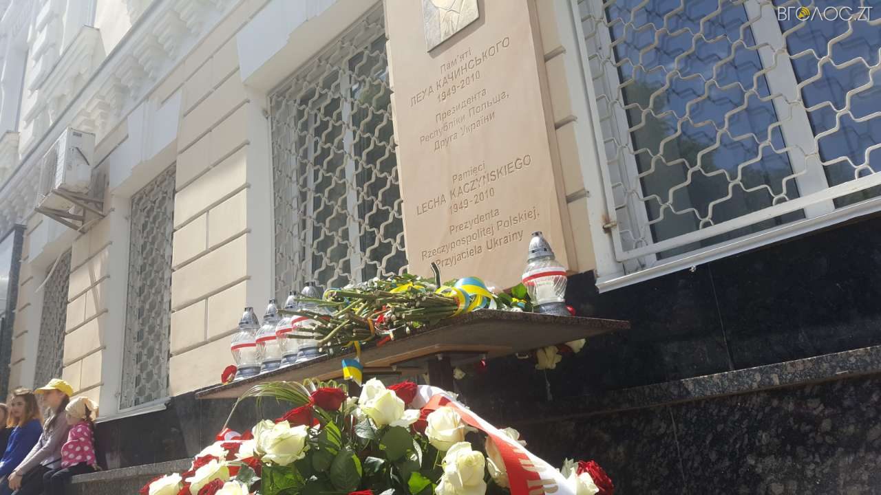 У Житомирі 20 травня відкрили меморіальну дошку загиблому в авіакатастрофі Президенту Польщі Леху Качинському, яку встановили на фасаді приміщення, де знаходиться місцева прокуратура.