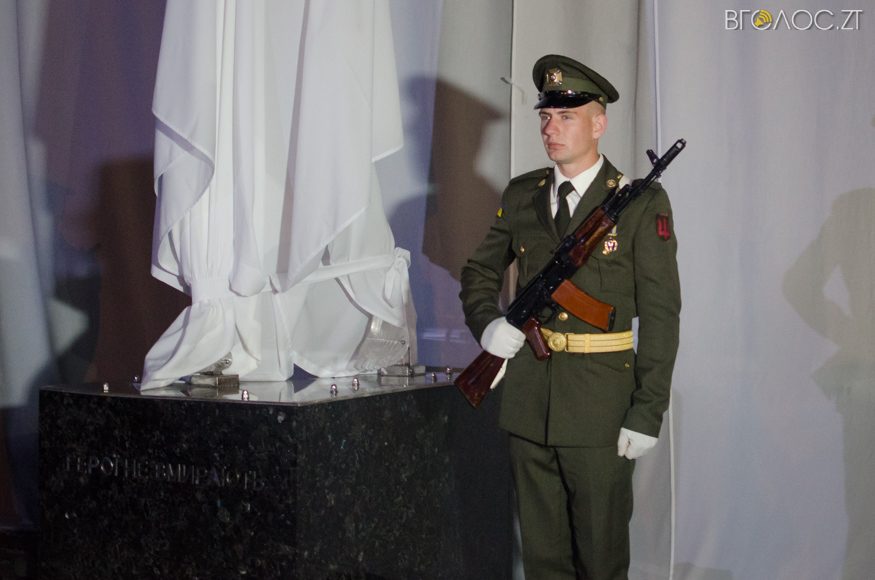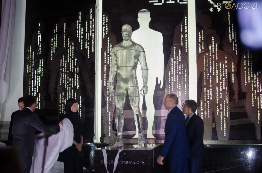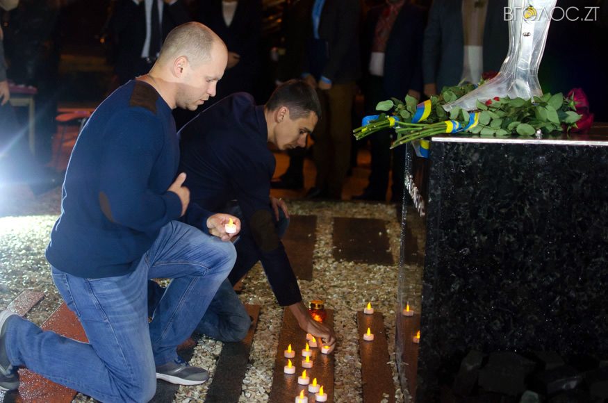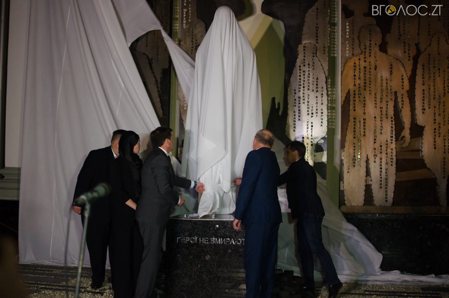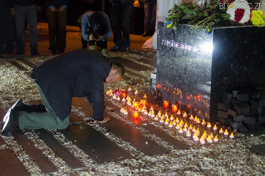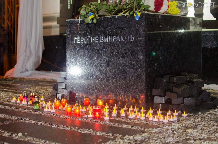 У Житомирі відкрили пам’ятник Героїв Небесної Сотні. На майдані ім. С. Корольова 23 серпня з цієї нагоди зібралися сотні житомирян. Триптих виготовлений з кортенової сталі – так званого «вічного» металу. Висота скульптури – понад 3 метри, а висота триптиху – близько 8 метрів (два поверхи фасаду будівлі). Вночі композиція підсвічується.