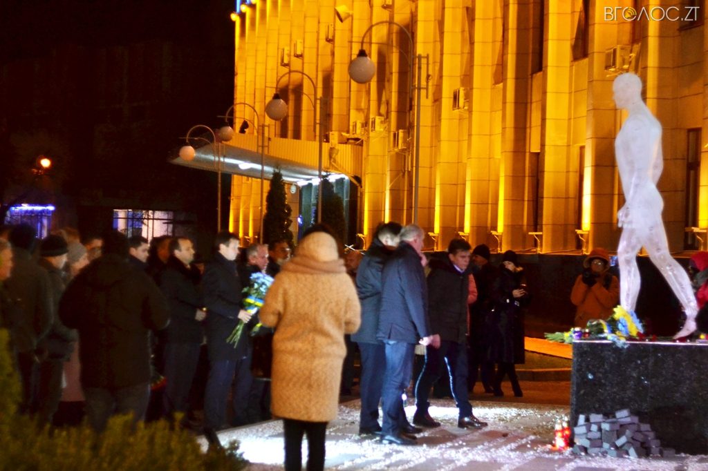 У Житомирі 21 листопада відбулося Віче до Дня Гідності та Свободи. Житомиряни долучилися до поминального молебню на майдані імені С.П. Корольова, де вшанували пам’ять загиблих та запалили лампадки в їх честь. Після цього поклали квіти до пам’ятника Героям Небесної Сотні.