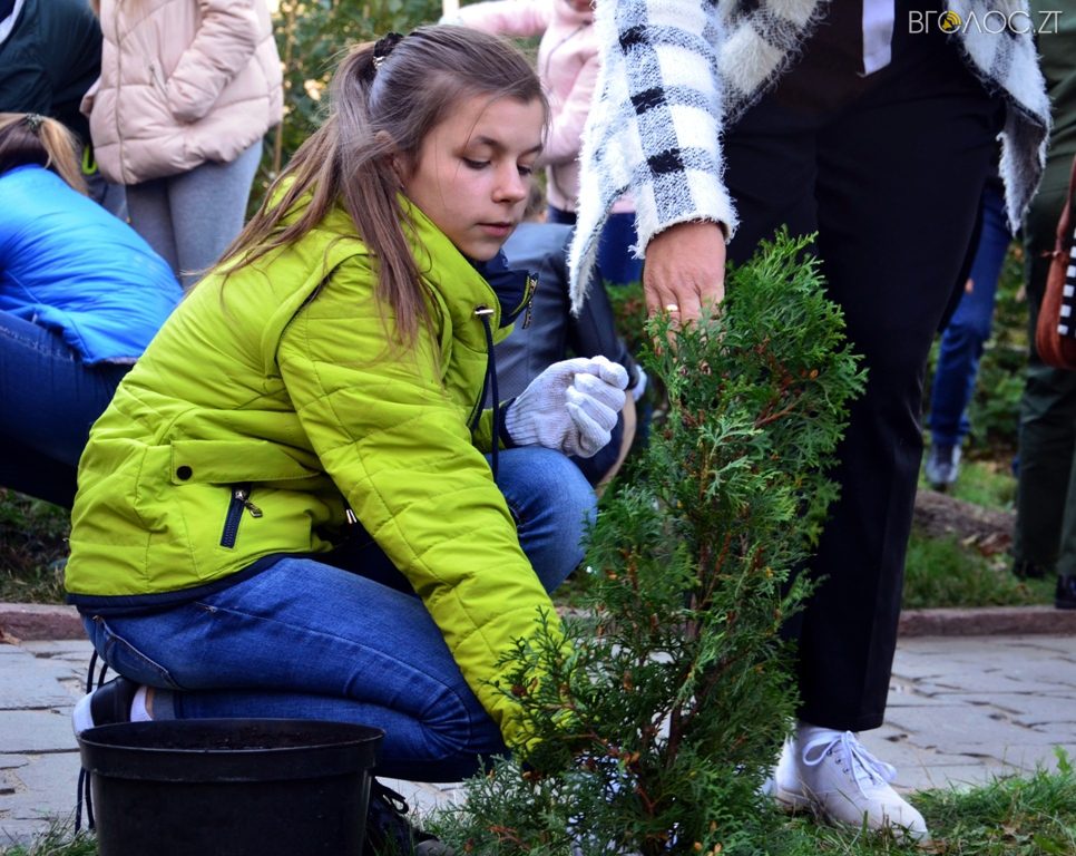 “Завдяки дітям з Баранівського шкільного лісництва, які виграли минулорічний всеукраїнський конкурс юних лісівників, в цьому році Житомирська область приймає традиційний зліт лісівників. Це дуже велика подія для нашого обласного управління лісового та мисливського господарства. В останній день закриття цього конкурсу вирішили створити на згадку всім майбутнім поколінням алею на якій висаджено 18 саджанців туй колоновидних і 6 сажанців декоративних кущів”, –