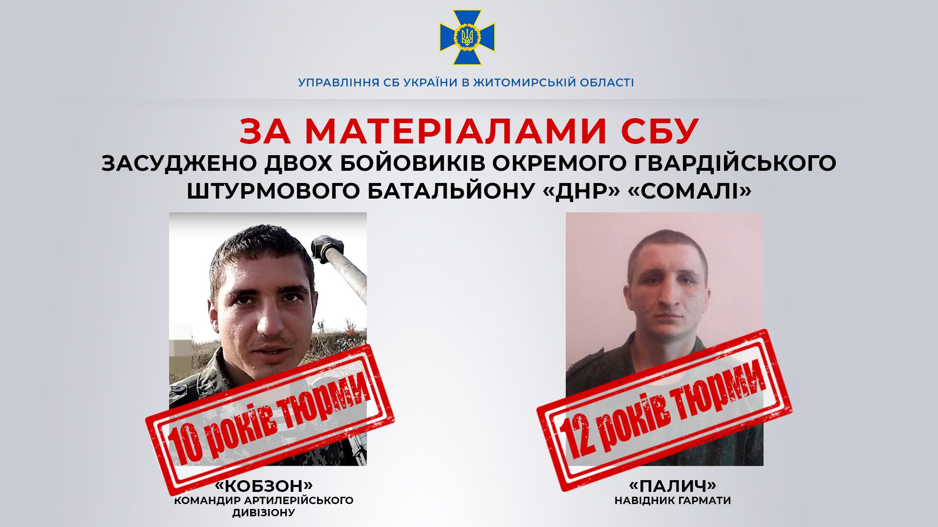 У Житомирі судили двох бойовиків батальйону «сомалі» терористичного угуповання днр. Про це повідомили у пресгрупі управління СБУ у Житомирській області.