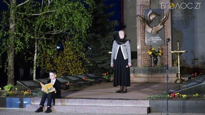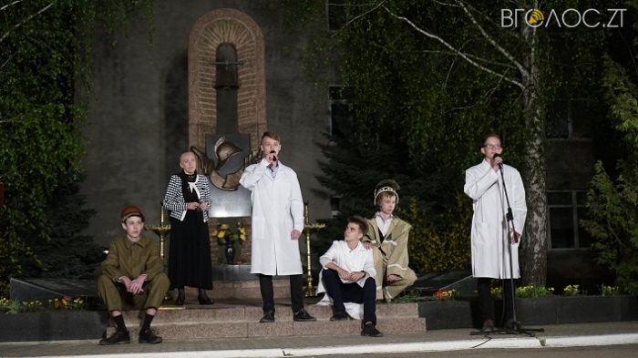 За участю учнів Житомирської міської гімназії №3 відбулася літературно-музична постановка, де співали пісні про героїзм та подвиг тих, хто ціною свого життя рятували світ від катастрофи. Учасники заходу запалювали свічки та разом зі священиками виконали спільну молитву.