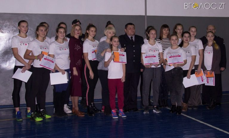 У Житомирі 14 листопада відбулося офіційне закриття проекту «Школа самозахисту для дівчат та жінок «НЕСЛАБКА СТАТЬ».  Головним у проекті стало завдання підвищити рівень обізнаності дівчат та молодих жінок відносно власних прав та можливостей, навчити їх самозахисту та підвищити рівень лідерського потенціалу. Про це повідомила прес-служба Житомирськго навчального центром підготовки поліцейських.