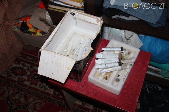 У результаті обшуку на балконі квартири правоохоронці виявили пакунок із подрібненою коричневою рослинною масою вагою близько 2 кг. За попередніми висновками експерта, це макова солома. А в одній з кімнат помешкання знайшли з десяток медичних шприців – частково заповнених бурою та прозорою рідинами (попередньо – ацетильований опій і прекурсор) та вже використаних. Також вилучили обладнання, за допомогою якого виготовлялись наркотичні засоби.