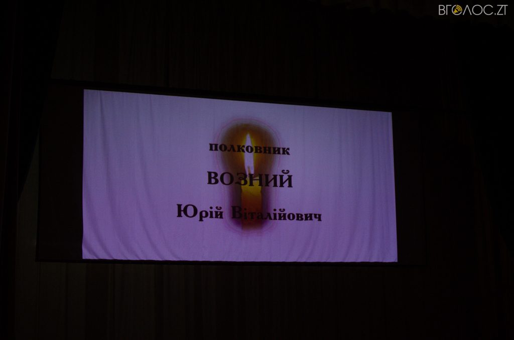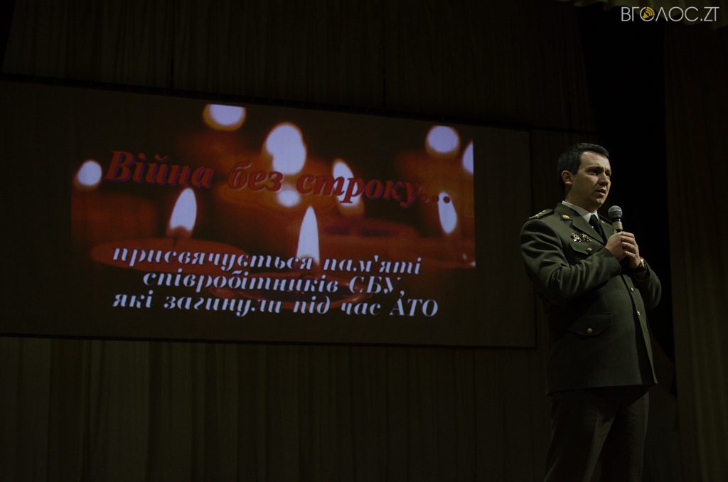 Курсанти академії Служби безпеки України продемонстрували присутнім також виставу-реквієм «Війна без строку…». Житомирянам також продемонстрували авторський портрет полковника Служби безпеки Юрія Возного, який загинув наприкінці червня минулого року під час виконання службових обов’язків у районі АТО. Охочі також мали змогу переглянути прем’єрний показ фільму-спогаду про нього.