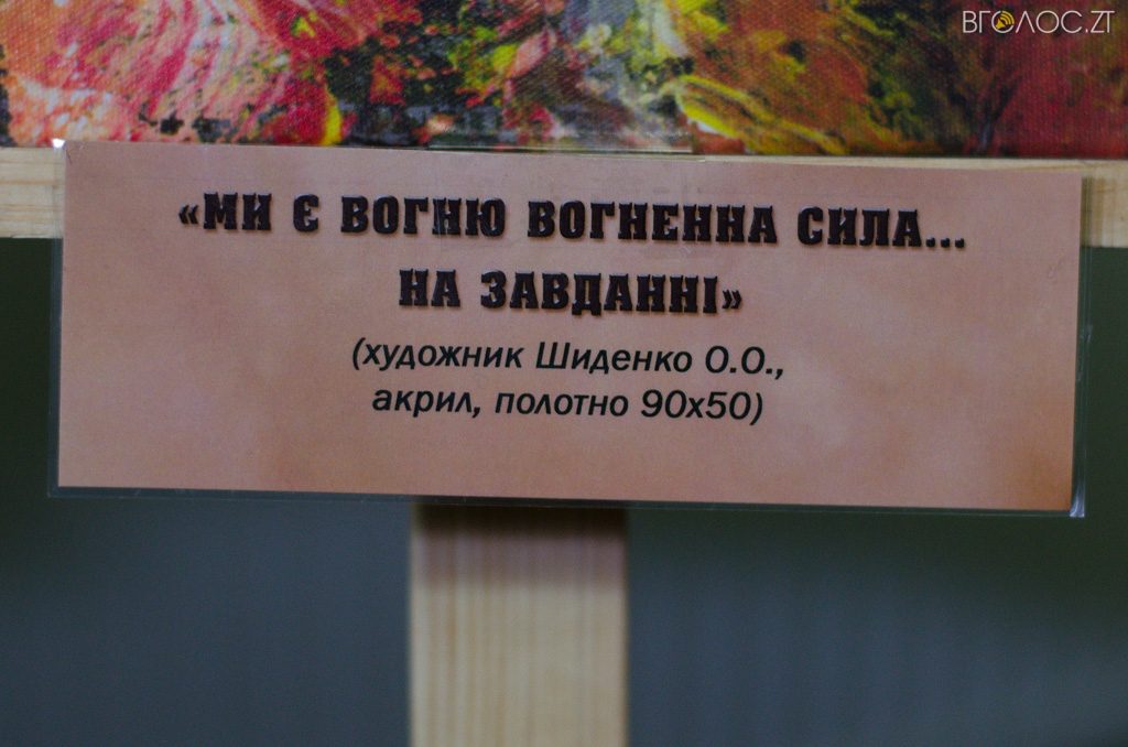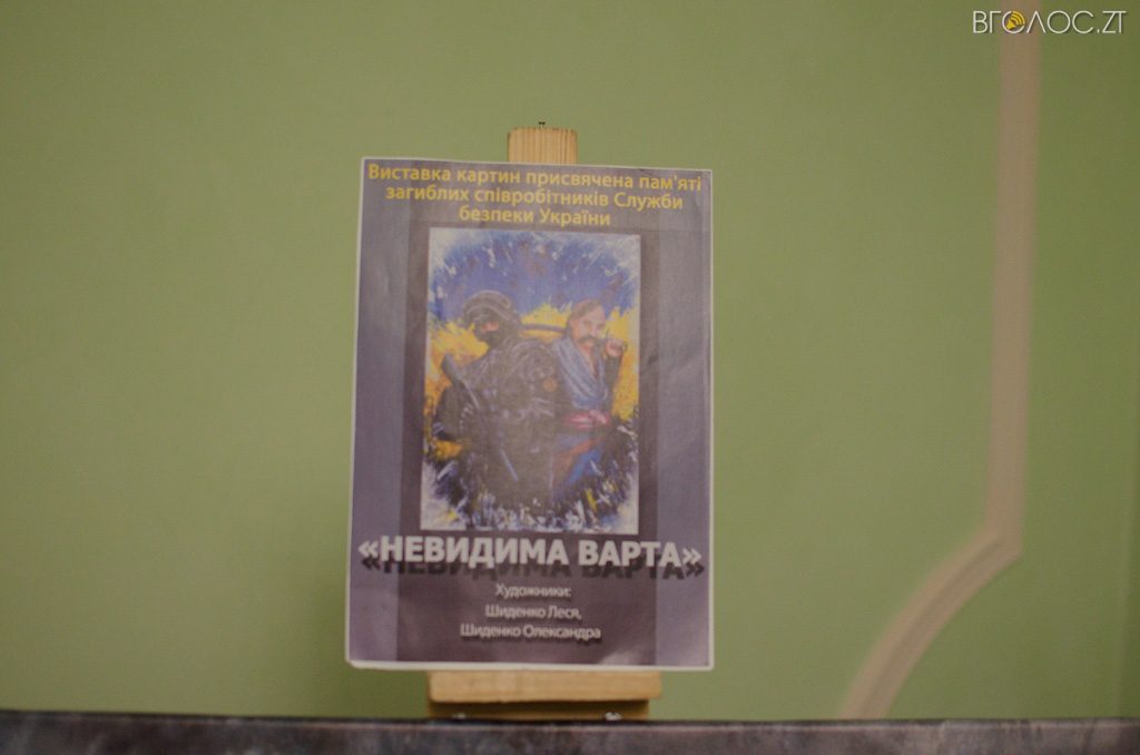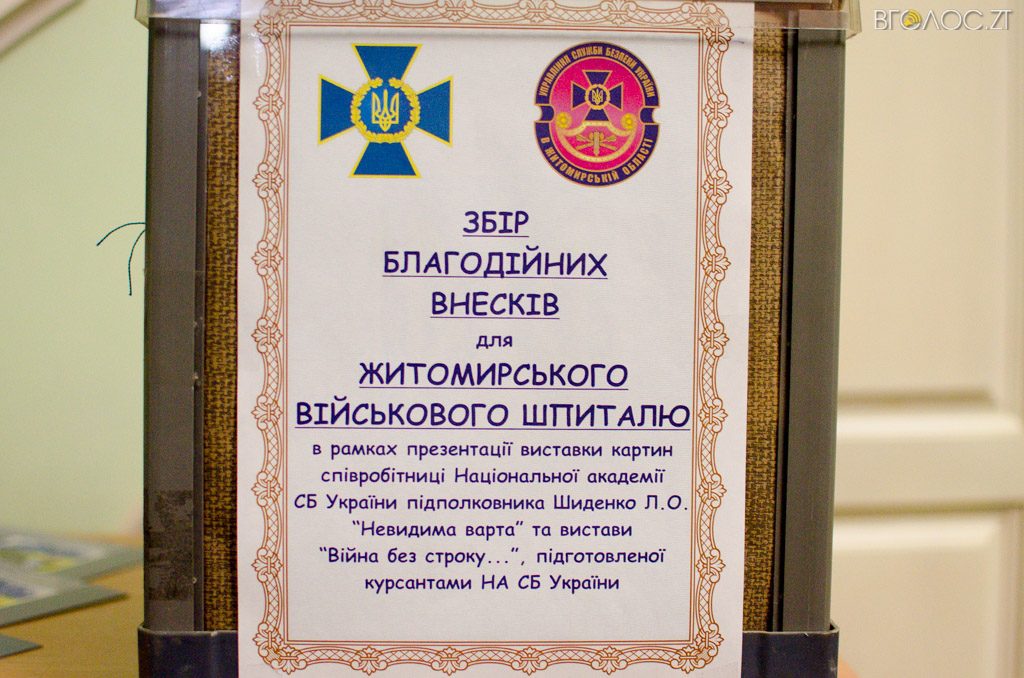 Благодійна виставка «Невидима варта» пройшла 4 лютого у житомирській філармонії. Автором картиин є співробітник Служби безпеки України Олеся Шиденко. Портрети службовців та картини з повсякденного життя співробітників були зображені на полотнах. Гроші, які відвідувачі жертвували у спеціальні скриньки, відправили на рахунок військового шпиталю, який лікує учасників АТО.