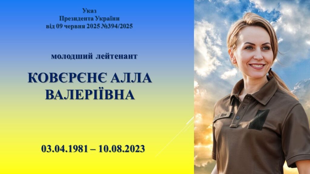 Ковєрєнє Алла Валеріївна – молодший лейтенант;