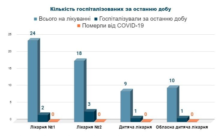Найбільше хворих дорослих, 24 особи, перебуває у Житомирській ЦМЛ №1. Найбільше дітей, 10, знаходиться у обласній дитячій лікарні.