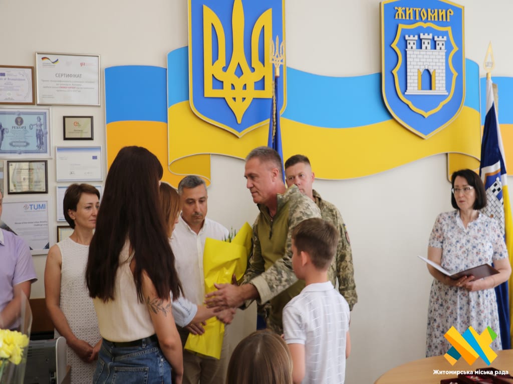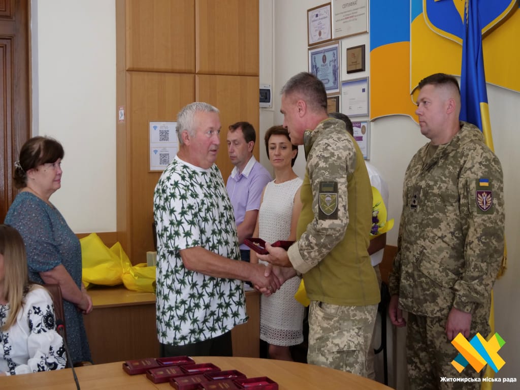 У Житомирській міській раді 15 серпня вручили посмертно державні нагороди військовим, які загинули, боронячи Україну. Ордени отримали рідні загиблих вояків.