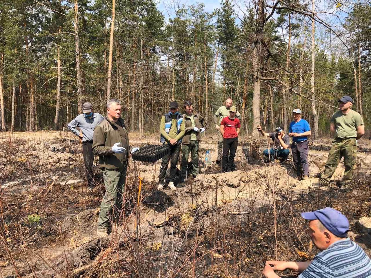 “Садіння лісу вважають лісівники своїм головним завданням, відтак не чекаючи весни, вони взялися до відновлення пошкодженого вогнем. Отож наприкінці минулого тижня працівники Богунського лісництва разом з директором підприємства Русланом Карчевським та головним лісничим Сергієм Дубницьким на трьох ділянках загальною площею 1 гектар посадили 5 тисяч штук саджанців сосни звичайної”, – йдеться у повідомленні.
