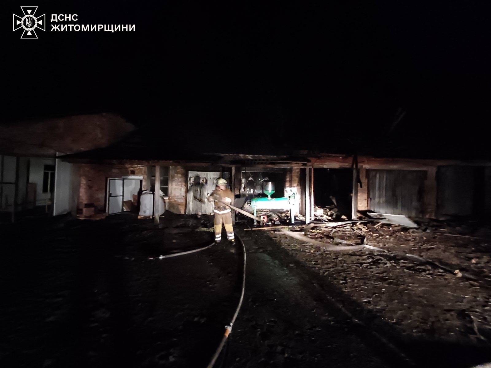 «17 березня о 17:23 до Служби порятунку «101» надійшло повідомлення про пожежу в цегляному складському приміщенні загальною площею 560 кв. метрів у селі Глибочок Новогуйвинської територіальної громади Житомирського району. По прибуттю до місця події рятувальників було встановлено, що в одній із кімнат приміщення складу горіла частина перекриття та покрівля», – розповіли рятувальники.