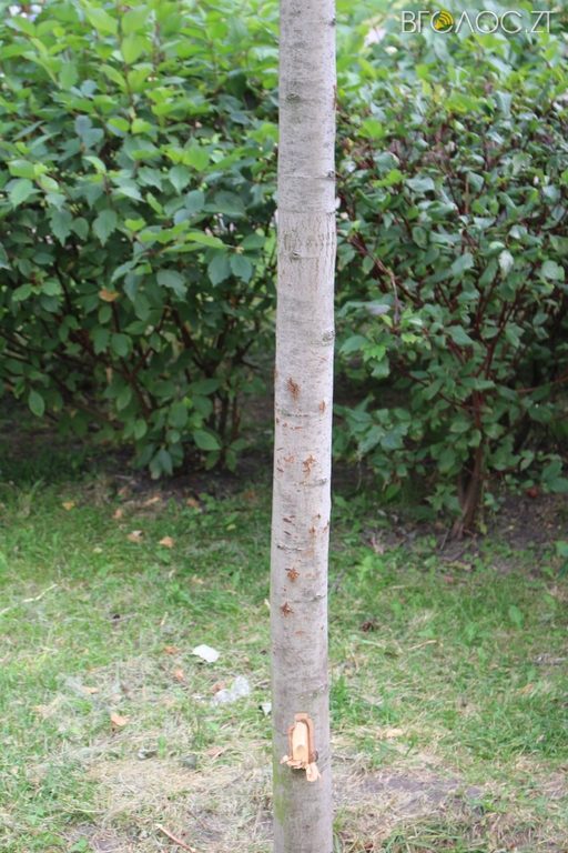 За словами заступника директора «Зеленбуду» Володимира Савченка, невідомий вночі поробив надрізи на близько 20 комунальних деревах.