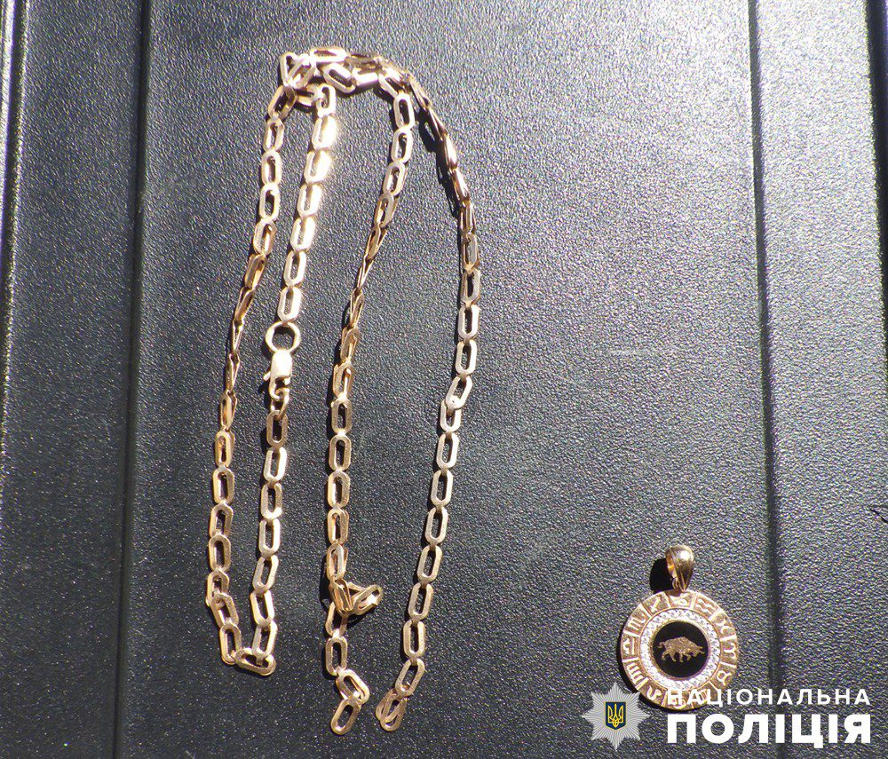 На місці події схвильована 51-річна місцева жителька розповіла, що йшла вулицею міста, коли невідомий чоловік зірвав з її шиї золотий ланцюжок та побіг у невідомому напрямку. Жінка зазначила, що вартість прикраси складає понад 20 тисяч гривень.