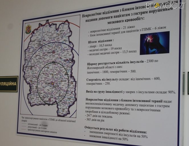 Основним завданням роботи неврологічного відділення є надання допомоги пацієнтам з гострим порушенням мозкового кровообігу в перші три години від початку захворювання для проведення тромболітичної терапії, попередження інвалідизації пацієнтів та зменшення випадків смертності. Відділення обладнане за сучасними світовими стандартами. На його реконструкцію витрачено майже 7 млн грн з обласного бюджету та Державного фонду регіонального розвитку. Усім пацієнтам з гострим порушенням у перші три години від початку захворювання буде виконуватись безкоштовно комп’ютерна томографія, ангіографія судин головного мозку і в разі ішемічного інсульту згідно з показниками буде проведена тромболітична терапія.
